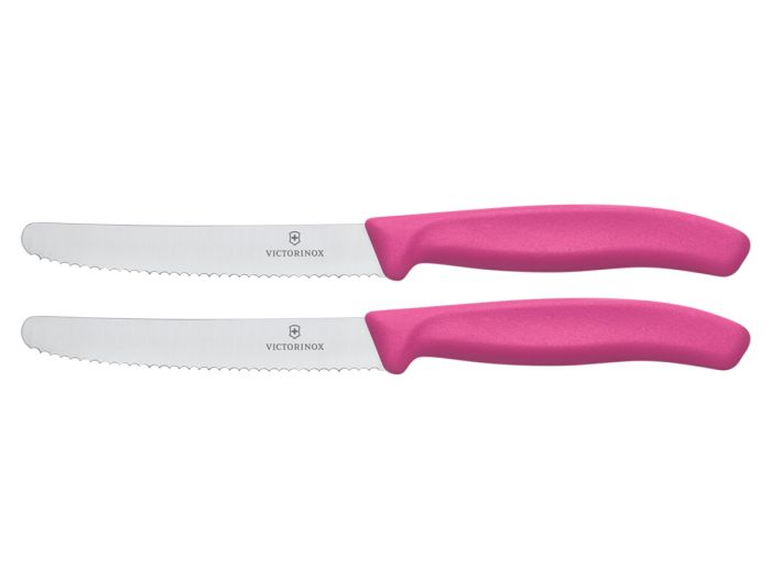 Das Victorinox Swiss Classic Tafelmesser-Set - Pink besteht aus zwei rasiermesserscharfen Küchenmessern und ist perfekt zum Schneiden von z. B. Gemüse oder Käse.