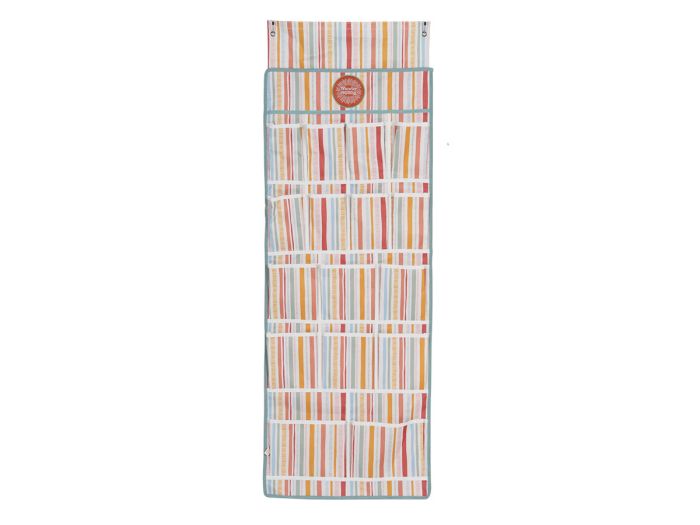 Der Organizer lässt sich leicht auf verschiedene Arten befestigen. Hängen Sie ihn mit den Haken an eine Wohnwagenschiene, befestigen Sie es mit Klettverschluss an einer Zeltstange oder verwenden Sie die Ösen zum Aufhängen an Haken.