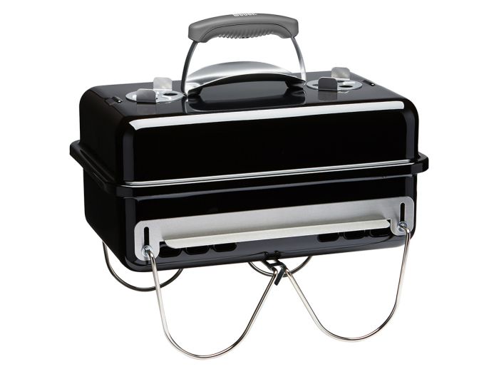 Der Weber Go-Anywhere ist ein kompakter Holzkohlegrill mit einer 42 x 26 cm großen Grillfläche.
