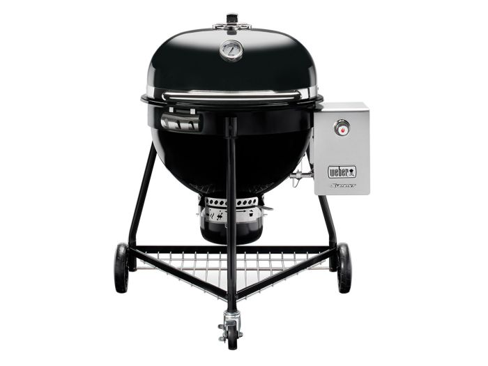 Der Summit von Weber stellt in Sachen Aussehen und Leistung alle Grills der gleichen Kategorie in den Schatten. Das besondere, langlebige, doppelwandige, isolierte Stahl erreicht in kürzester Zeit die gewünschte Temperatur und speichert die Hitze für den ganzen Tag des Räuchervorgangs, während gleichzeitig die Menge der beim Kochen verbrannten Holzkohle auf ein Minimum reduziert wird. Wenn Sie für eine große Gruppe grillen möchten, dann ist der Summit Kamado dank seiner besonders großen Grillfläche von 61 cm auch sehr gut geeignet.