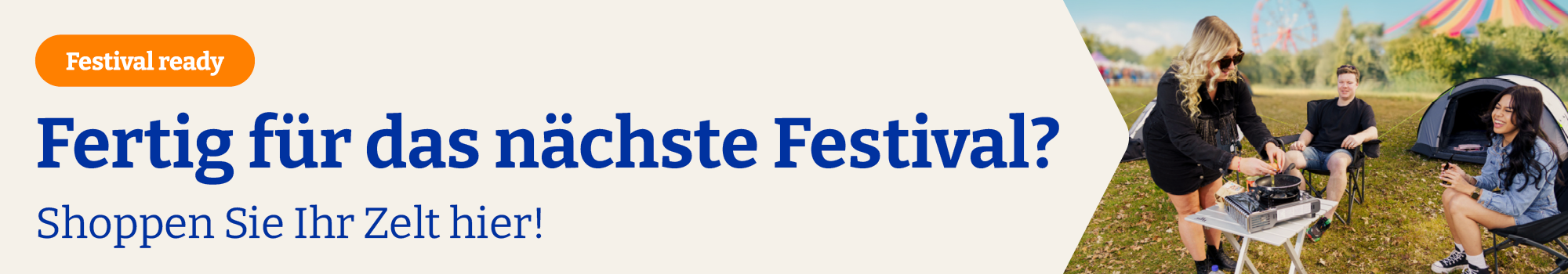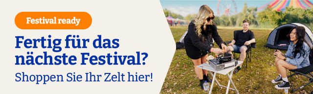 Sie besitzen noch kein Festival Zelt für die nächste Festivalsaison? In unserem Sortiment finden Sie 2- bis 6-Personen-Zelte wie zum Beispiel Kuppelzelte, Tunnelzelte und das schnell aufzubauende Wurfzelt. Die Zelt von unserer Eigenmarke sind qualitativ hochwertig und preisgünstig und eignen sich daher ideal für Festivals. Bestellen Sie Ihr gewünschtes Zelt ganz einfach online.