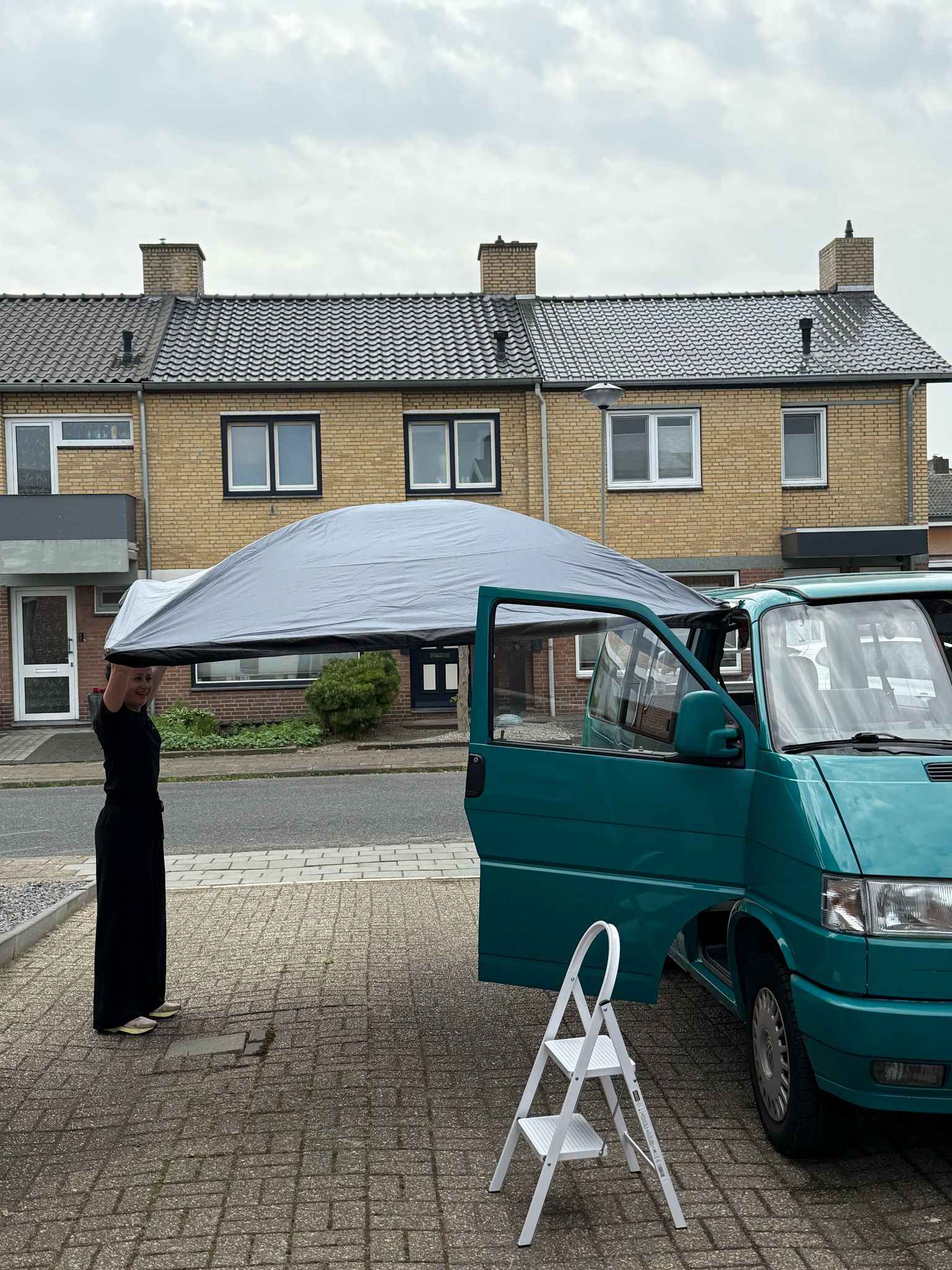 - Goede camperbus aanvulling!Ik had een simpele luifel maar vanwege de hoogte en het ontbreken van zijwand(en), deze aangeschaft. Het was een tweedekans variant maar geen spoor te ontdekken..in super staat voor een gereduceerde prijs. Aangezien ik vaak alleen reis, is het voor mij een must om met 1 persoon te kunnen opzetten. En dat lukt met deze parasol luifel. Even handigheid krijgen in het installeren van de stokken, maar het lukt goed! De luifel is hoog genoeg zodat ik er niet meer tegenaan loop met de mijn haar in een knot bovenop mijn hoofd. En is breed genoeg (niet té) voor aan mijn t4 busje uit 1992. Twee verschillende pezen (in dikte) om door de rail te halen zodat hij eigenlijk altijd wel past. Blij mee! Kan niet wachten hem te gaan testen op mijn eerste vakantie trip, nu eerst uitgetest op de oprit.