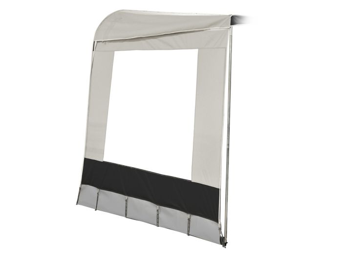 Die Seitenwand ist mit einem großen Fenster ausgestattet und kann sowohl auf der linken als auch auf der rechten Seite verwendet werden. Die Oberseite ist mit Öffnungen versehen, durch die die Dachstange des Sonnendach Gestänges geschoben werden kann.