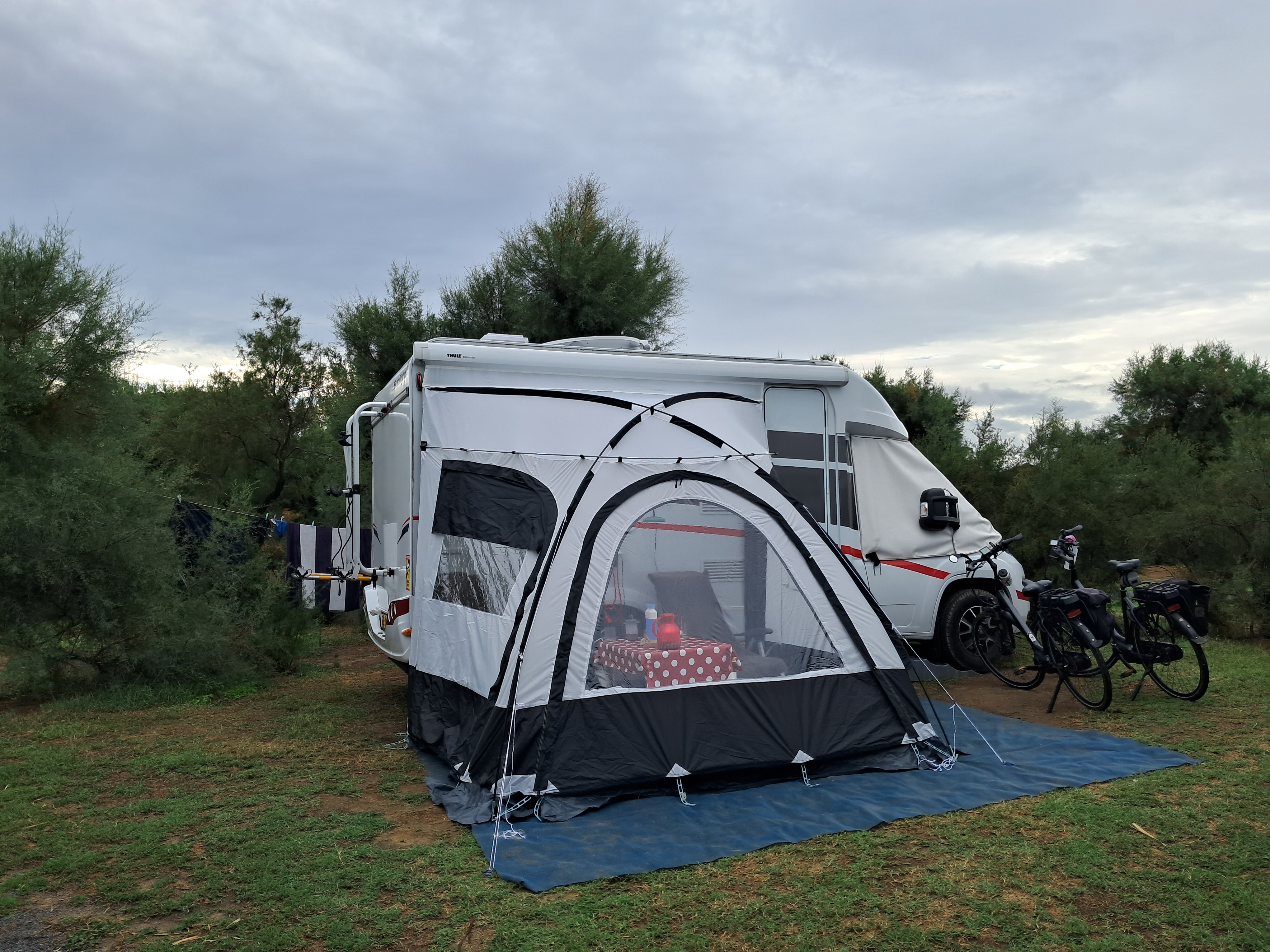 - Ook voor campers na een kleine aanpassingHoewel bestemd voor een caravan heb ik dit tentje kunnen aanpassen voor mijn Sunlight T58 camper. Boven aan de peesrand heb ik een extra strook met een dunner peeskoord genaaid. Deze past in mijn Thule luifel , die nu gewoon dicht blijft. Op deze manier zit ik toch droog bij slecht weer en belangrijk dusdanig harde wind dat ik mijn luifel niet wil gebruiken
